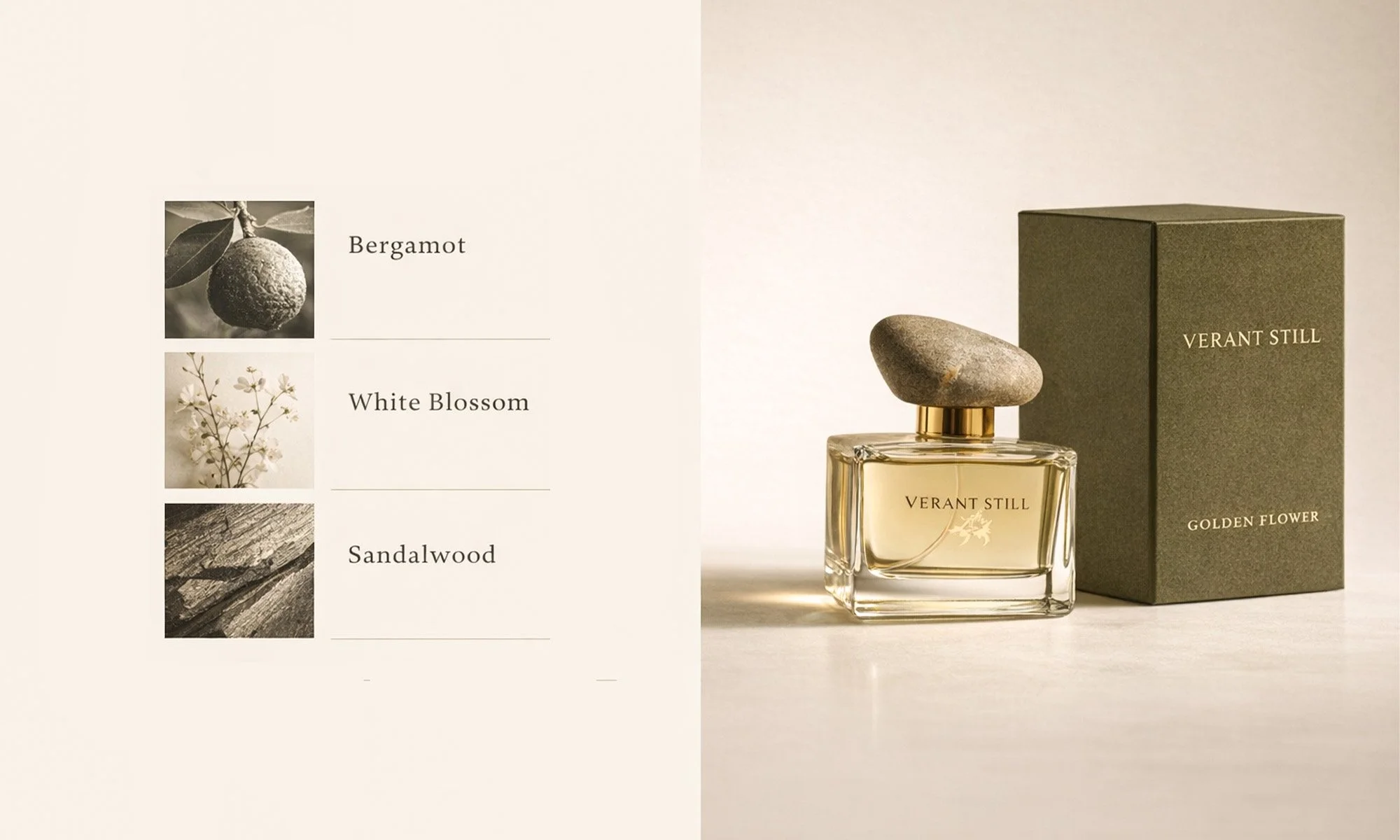 VERANT STILL is an AI-assisted fragrance brand developed through a distributed creative workflow. The project explores how generative models can collaborate in building a complete luxury brand system — from product design to advertising narrative.